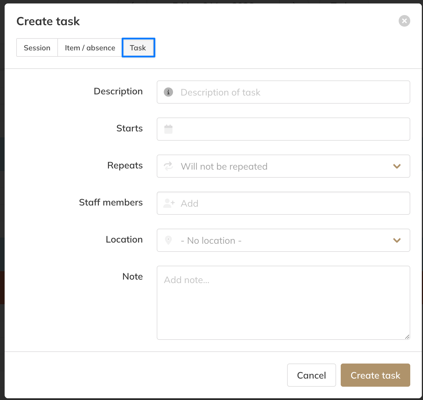 Tasks allow you to plan internal work and block time in your calendar without creating bookable Activities for clients.