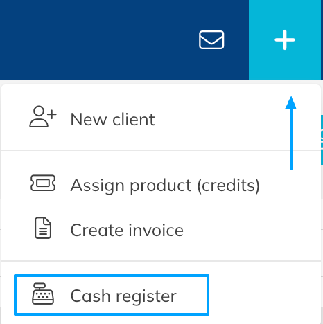 Step 1: Open the POS register: + icon (top right corner) > Cash register