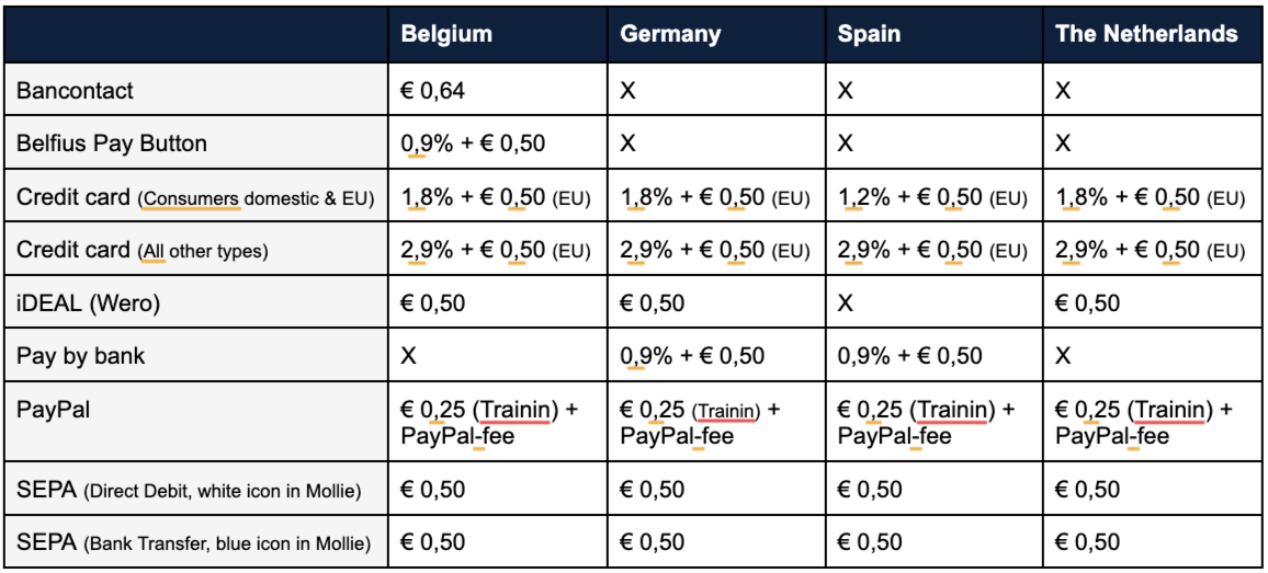 Wat zijn de Mollie transactiekosten