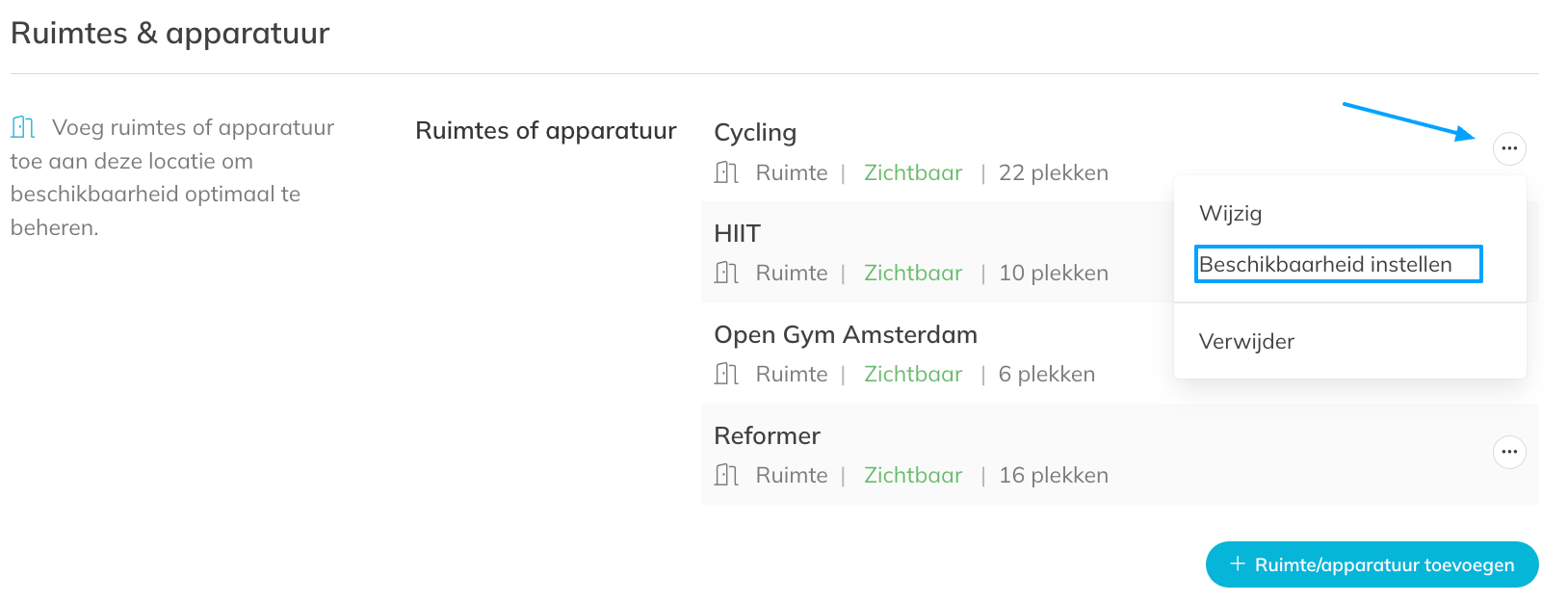 Stap 3: Stel de beschikbaarheid in: Ga naar ruimte/apparatuur > Beschikbaarheid instellen