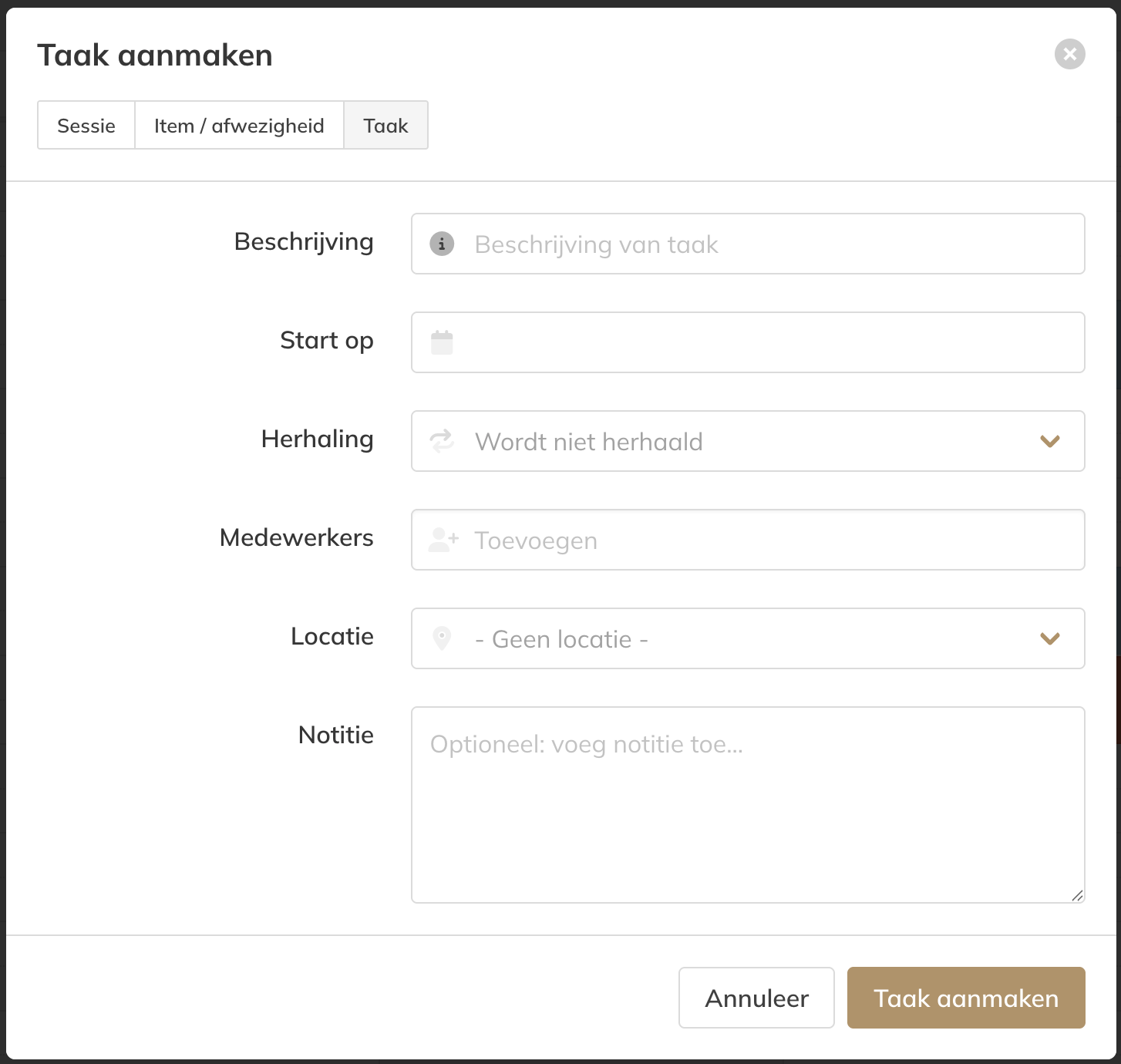 – Kies de optie om een taak aan te maken in plaats van een sessie voor klanten.