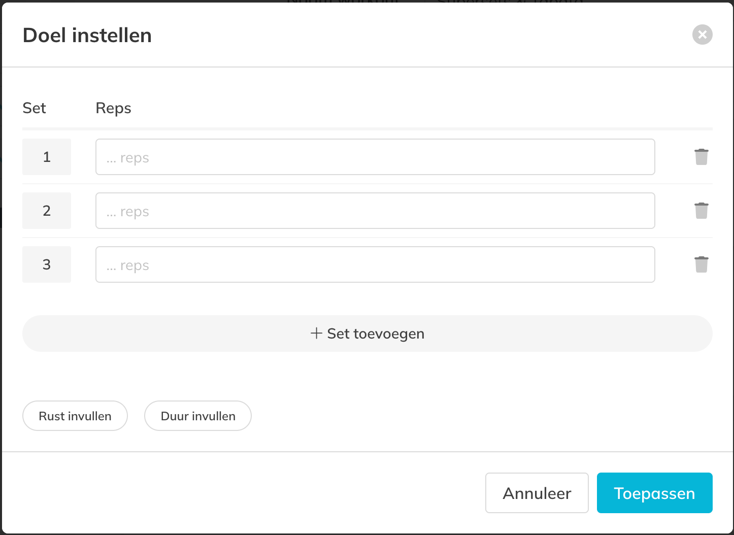 Stap 5: Configureer oefendoelen: Oefening details in Workout > Stel doelen in