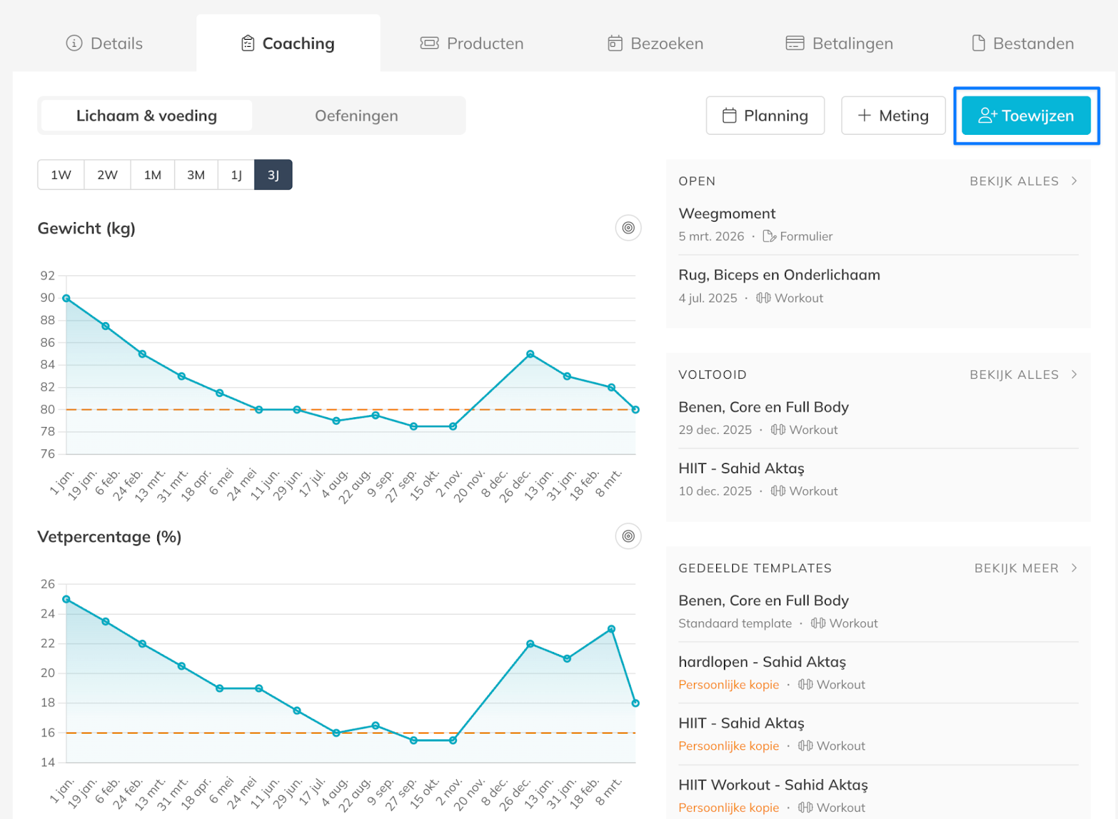 Scenario 2: Een workout, formulier of workoutprogramma toewijzen via het klantprofiel