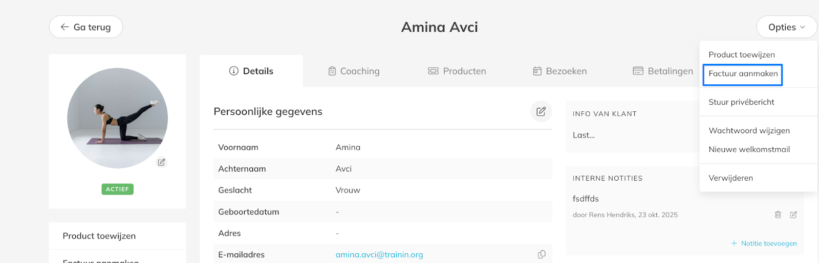 – Je kunt de betaallink direct versturen (de betaling verloopt via Trainin en wordt automatisch als betaald gemarkeerd zodra deze is ontvangen).